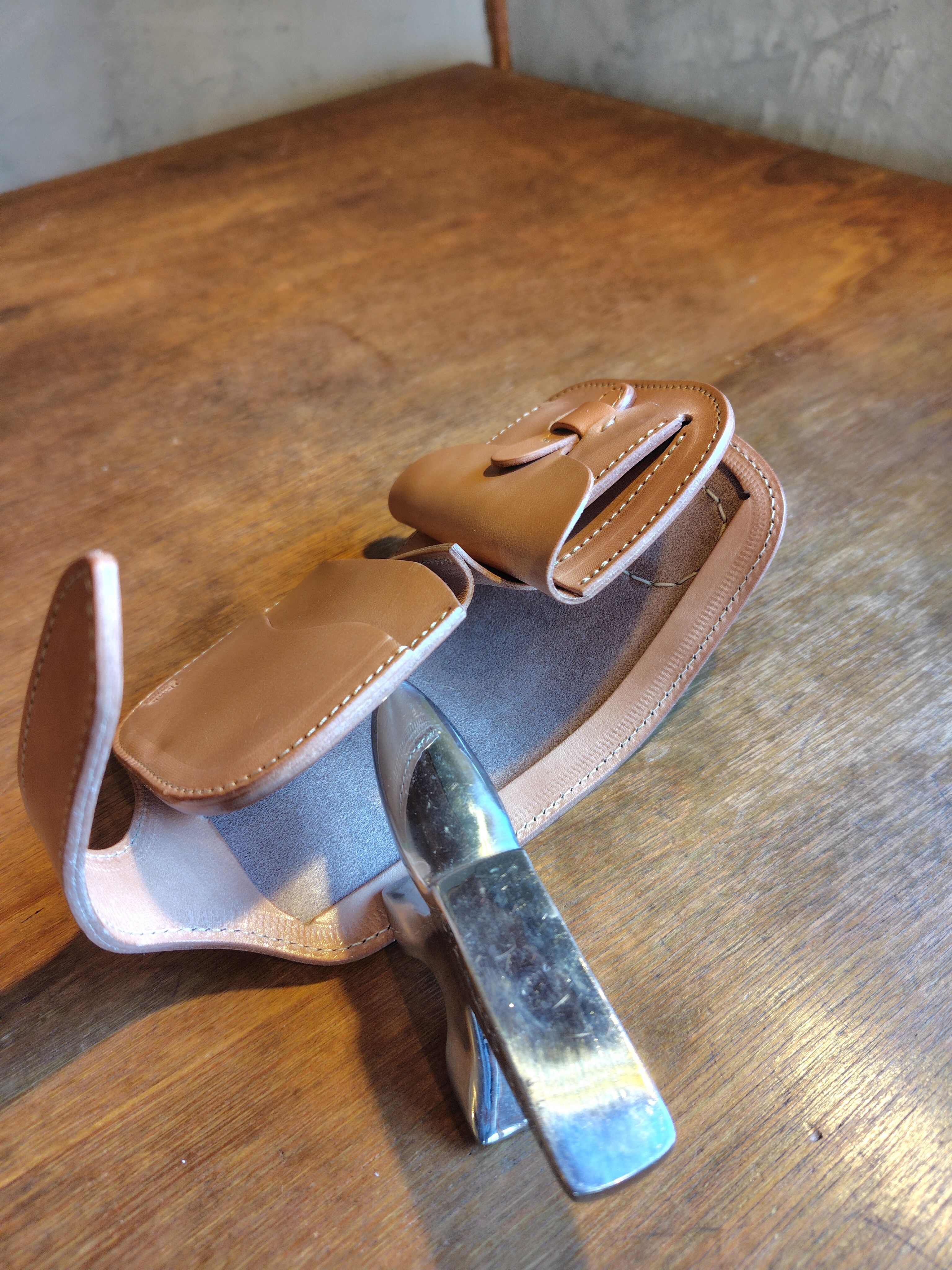 革と糸のみで組み上げたため、まず壊れることがありません。